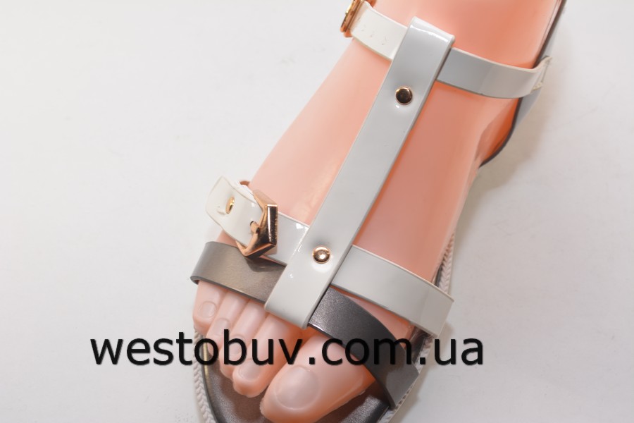 Оптом женские босоножки. Коробка 8 пар, росстовка 8 пар, 36-40 Новинка нынешнего лета, женские босоножки из экко-кожи с лакировкой. Верх - тонкие ремешки в спокойной цветовой гамме украшены заклепками и пряжками "под золото". Стелька искусственная кожа. Плоская подошва имеет небольшое рифление. Модель очень удобные и легкие и цена доступная.
