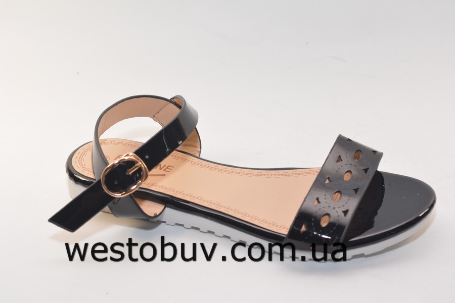 Оптом женские босоножки. Коробка 8 пар, росстовка 8 пар, 36-40. Недорогие, удобные босоножки для женщин любого возраста. Плоская подошва имеет небольшое рифление. Стелька - экко-кожа, верхняя часть модели сшита из искусственной лаковой кожи. Единственная перепонка расположена ближе к пальчикам украшена узором из геометрических отверстий. Застежка-петелька удачно скрыта за пряжкой и отлично фиксирует босоножки на ноге. Прекрасная летняя обувь.