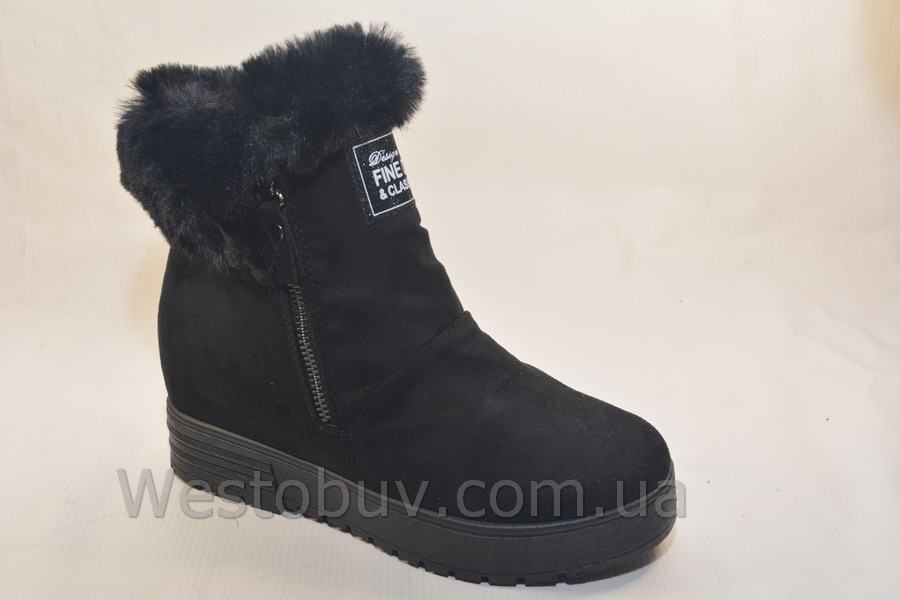 Ботинки женские оптом Молодежные зимние полусапожки. Материал верха качественный эко замш. Надписи спереди подчеркивают молодежный стиль модели. Голень ботинка отделана искусственным мехом. Внутри теплый мех.