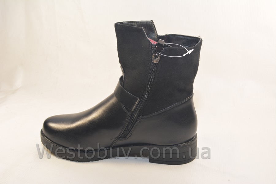 Хит продаж. Женские зимние ботинки на низком ходу. Модель не оставит равнодушными любительниц модной удобной обуви. Внешняя сторона имеет нерабочий замок и пряжку. Верх модели комбинированный: эко кожа, голенище - эко замш, застежка молния