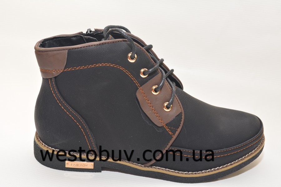 36-41 р. Осенние ботинки с коричневыми прошивкой и вставками.