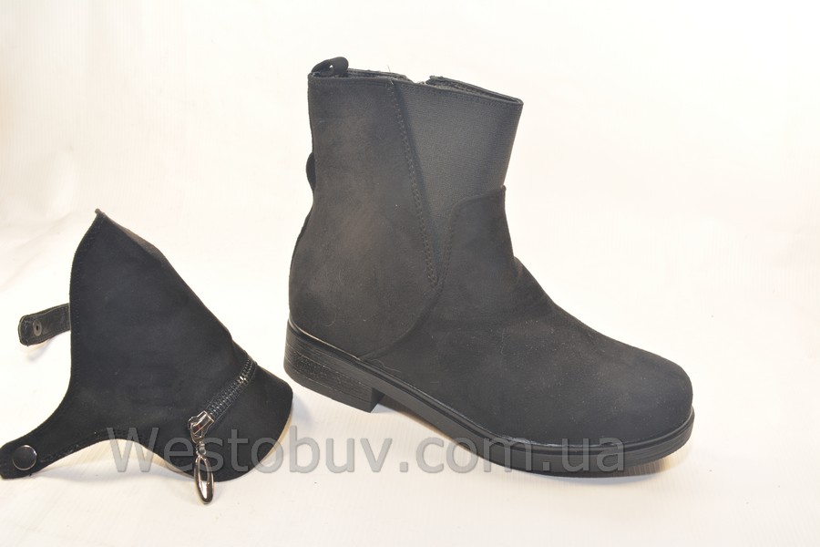 Ботинки женские оптом Новинка - зимние ботинки-трансформеры. Данная модель - идеальный выбор для современной леди, идущей в ногу со временем, но и при этом почитающей классику. Материал верха эко замш, внутри теплый мех.